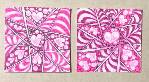ゼンタングルで、バレンタインに合わせた楽しい催しが開かれました。 毎日ハートをテーマにした 違うお題に合わせてゼンタングルを描いて、Facebook 上に作られたグループで 世界中のゼンタングル愛好者と作品を鑑賞しましょう。というものです。 ちょっと遅…