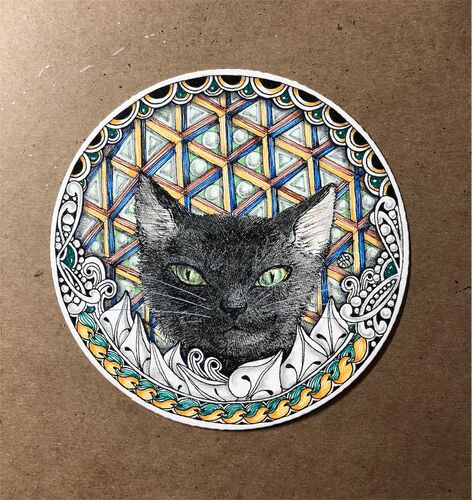 ゼンタングルのゼンダラタイルは、CDの大きさです。 Cat portrait は、何枚も描いているシリーズです。色んな猫を描いていると、モデルがいるんですか?と時々尋ねられます。 猫の写真集を見たり、フェイスブックで友達の飼ってる猫の写真を見たりして、イメ…