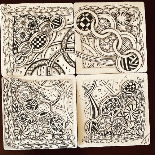 ゼンタングル®︎はリック ロバーツとマリア トーマスの2人によってアメリカで考案されたアートメソッドです。簡単な図形を組み合わせ繰り返し描く事で、文字が描ける人なら誰でも美しい作品を創ることができます。 ZentangleのZenは禅。描く中で自然と集中し、座禅を組んでいる時のようなメディテーション効果を期待できます。 近年の研究で、不安の軽減に効果があることがわかりました。ヒーリングアートとしても注目されています。